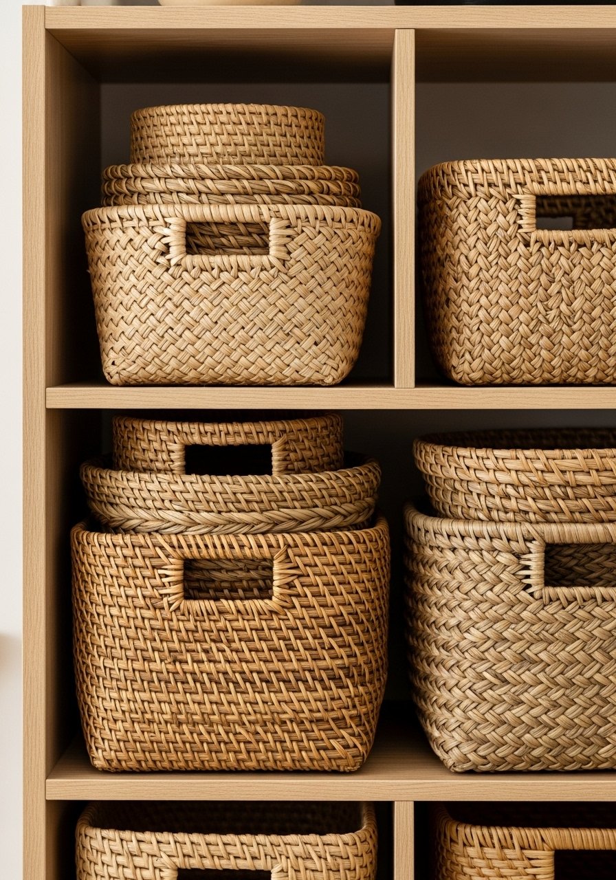 I replaced plastic bins with handwoven baskets in my pantry and everything felt calmer. Baskets hide clutter while adding texture. I learned the hard way that too-small baskets just create more bins; pick sizes that fit shelf depths.
