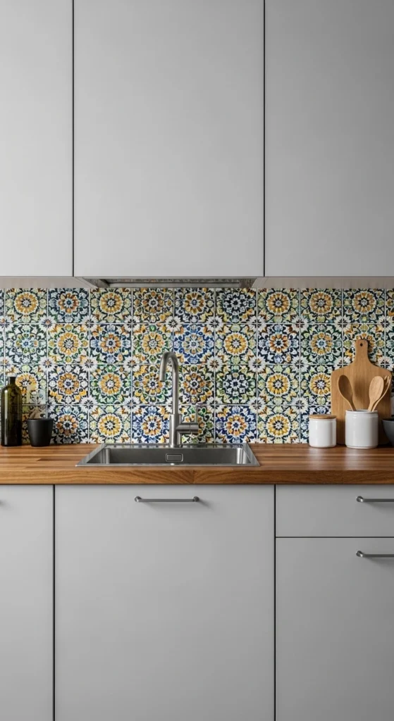 If you want your backsplash to be the star of the kitchen, go bold. Moroccan designs, geometric shapes, or artistic tiles instantly turn the backsplash into a focal point.