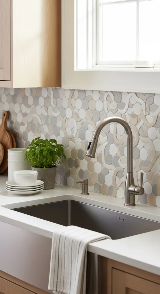 One of the biggest backsplash trends right now is mixed-material mosaics. Combining glass, stone, and metal tiles adds texture and depth.