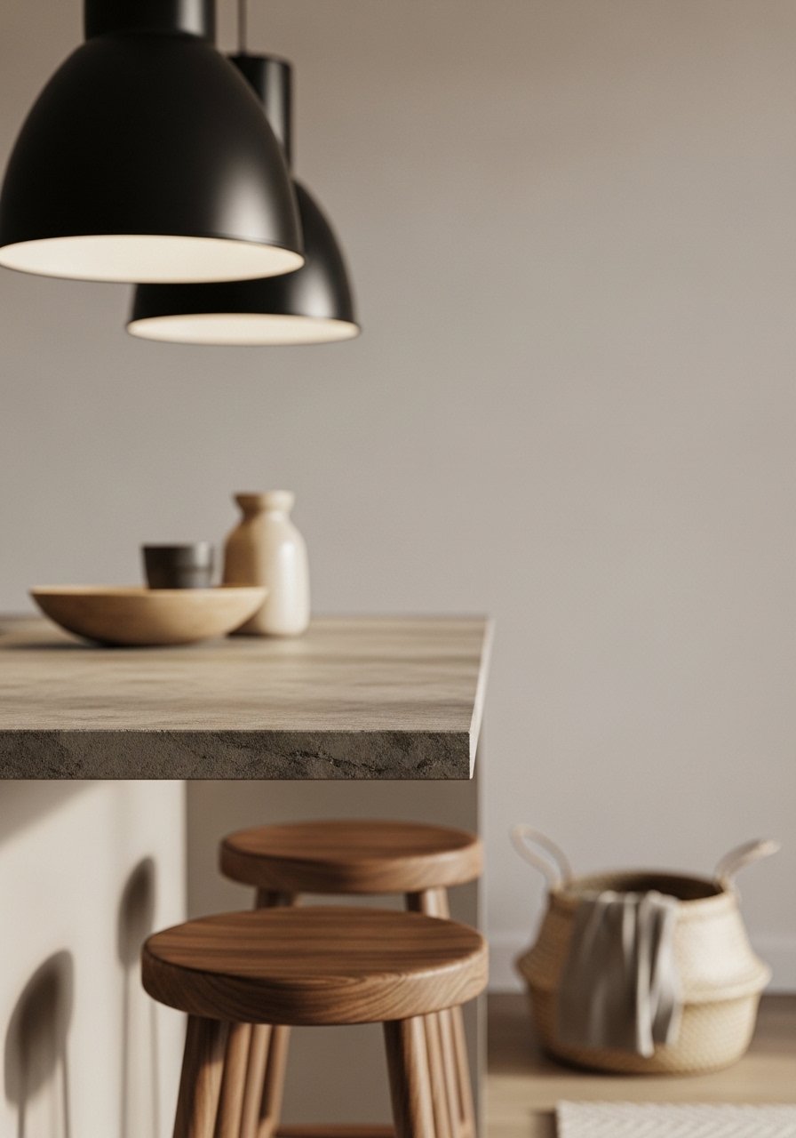 I pay attention to how black moves. Vertical elements—art, a tall pendant—pull the eye up. Horizontal elements—runners, hardware lines—bridge the room. When both directions are used, the kitchen feels composed.