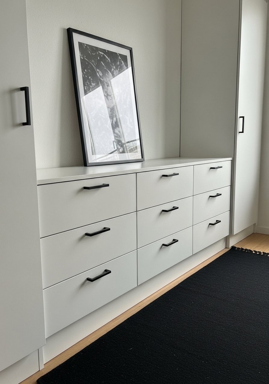 Visually, anchors make the room read intentional. One insight I learned: anchors should be at different heights so black travels through the room. Small mistake to avoid: fretting over matching every finish perfectly—variation of matte and satin keeps it lived-in.