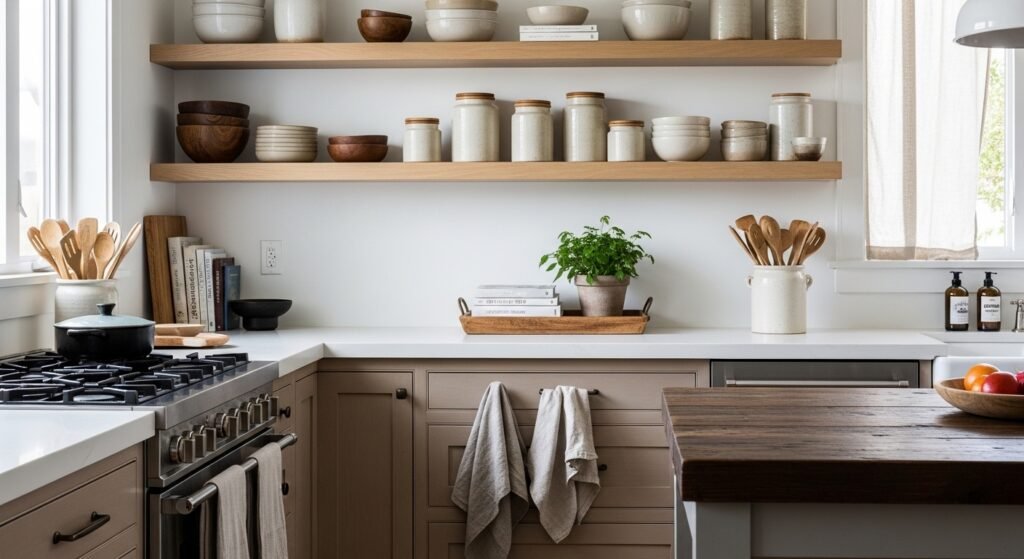 This is what I teach when a kitchen feels unfinished. You’ll learn how to place a few jars so counters read calm and shelves look curated. It’s achievable with simple groupings and one or two accent pieces in an organic modern or lived-in style.