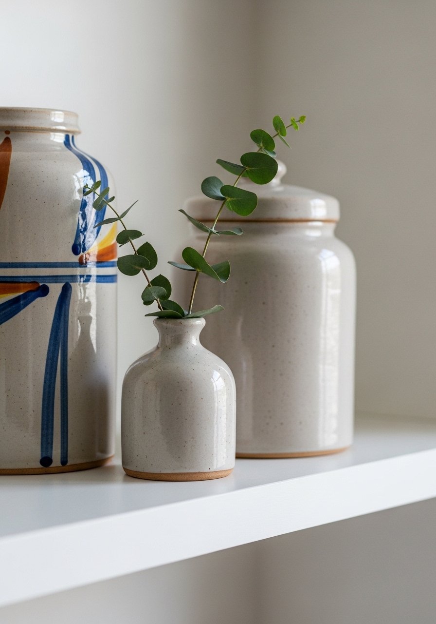 I learned that ceramic jars can add warmth and order. They ground a corner and make a shelf feel intentional.