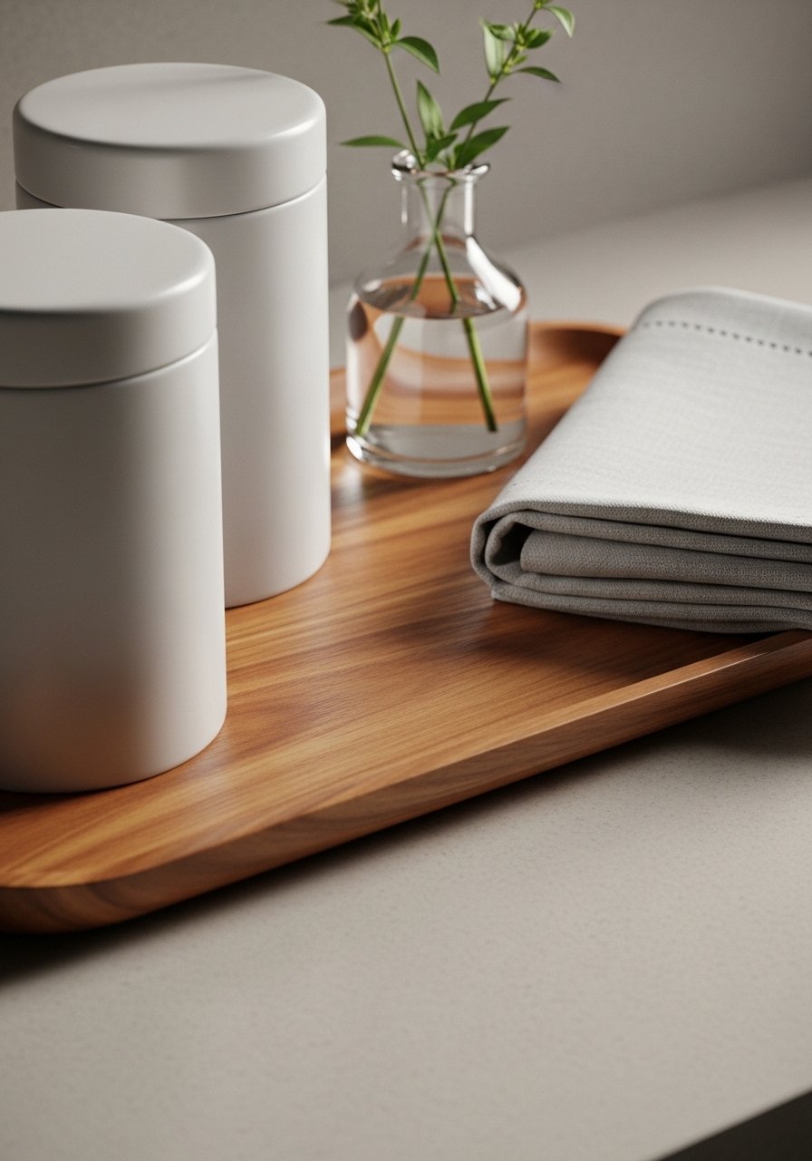 An insight: negative space matters. Let the tray breathe. Mistake to avoid: overcrowding the tray with too many jars. Keep one dominant piece and two supporting items.