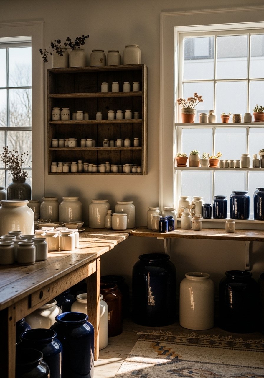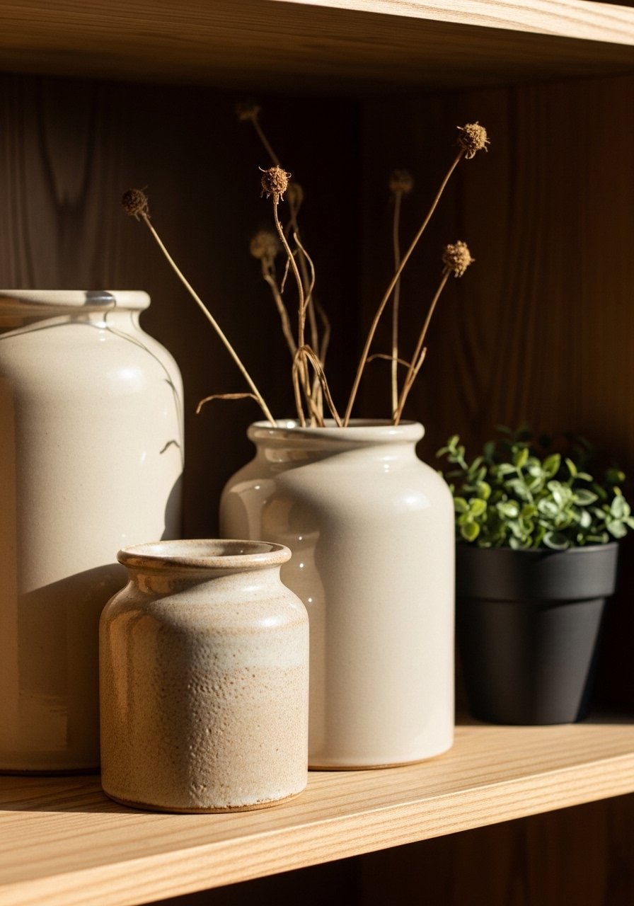 I aim for three groupings max: a countertop vignette, a shelf cluster, and maybe one statement jar. Within a grouping, use odd numbers—three jars look steadier than two or four. I vary height and finish (matte, speckled, glazed) to create depth.