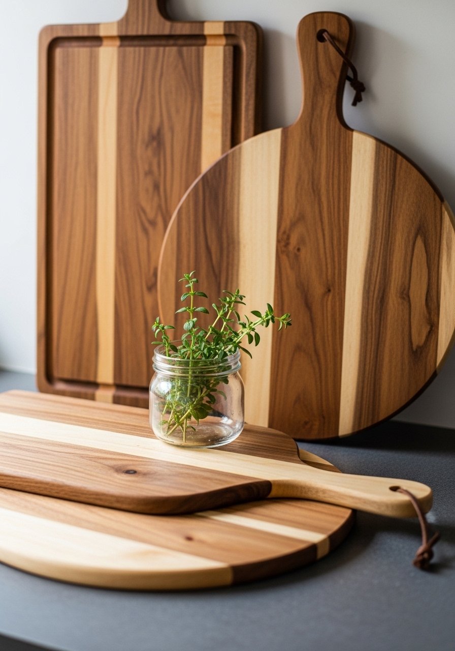 - Mixed acacia and walnut cutting board set, assorted sizes (~$30–80)