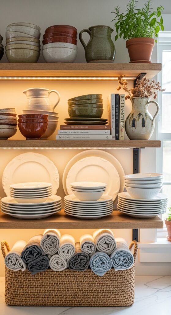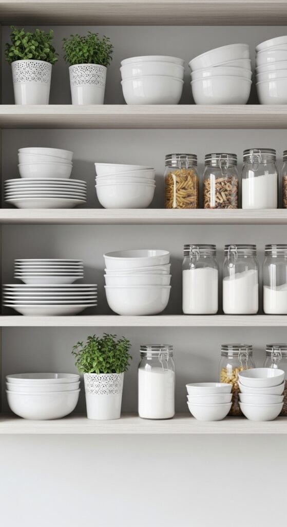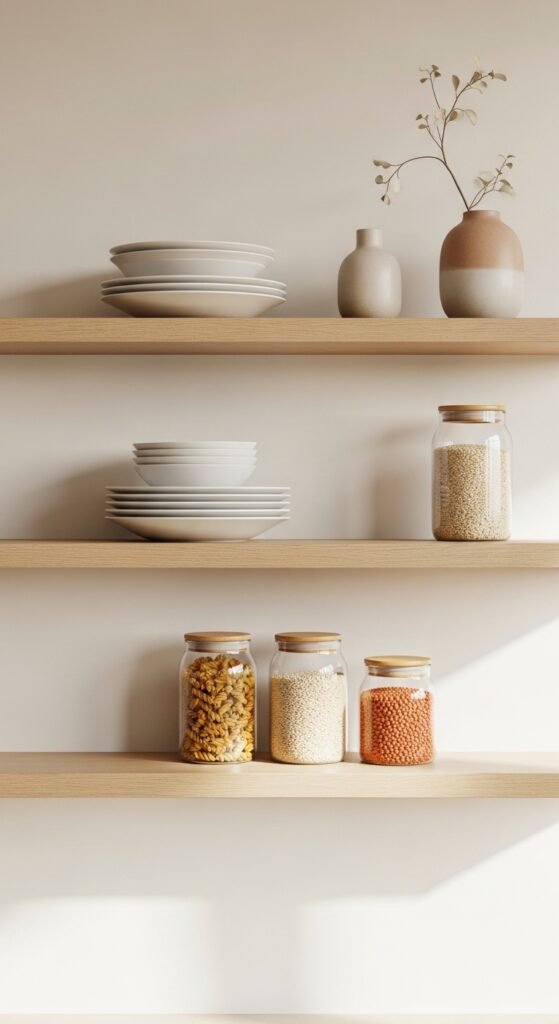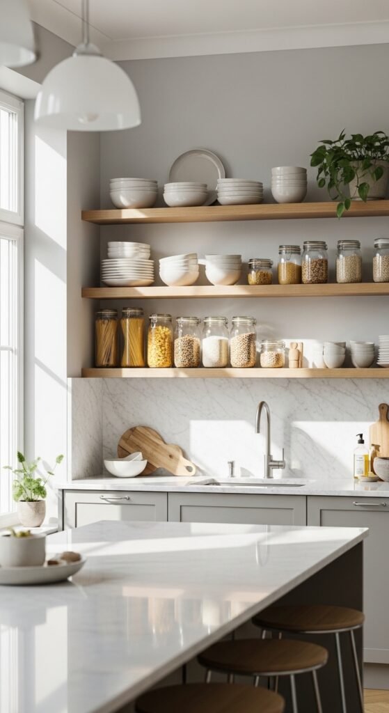 This approach keeps shelves from becoming “just for show” and makes your kitchen easier to use.