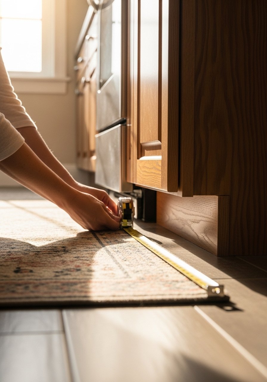 One mistake is choosing a rug that matches the cabinet color exactly. That removes contrast and flattens the room. Pick texture over exact color match for depth. If you have an open plan, orient the rug edges to align with cabinetry lines to keep visual flow.