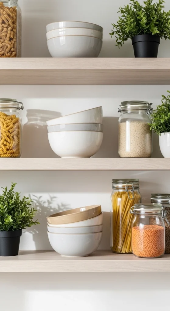 Open shelves can look beautiful… or overwhelming. The difference is editing.
