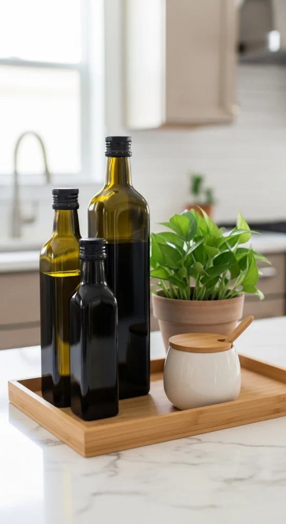Aim to keep only 2–3 functional items per counter section. Anything more starts to feel busy fast.