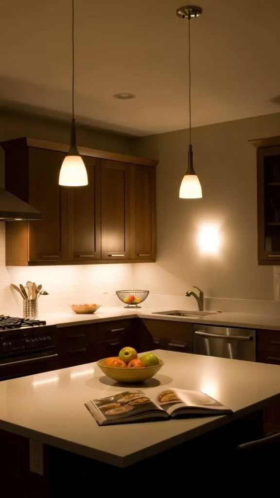 - Under-cabinet lighting for warmth and depth