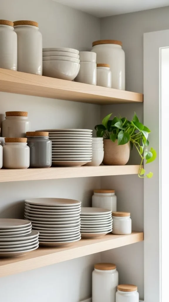 - Potted greenery on shelves