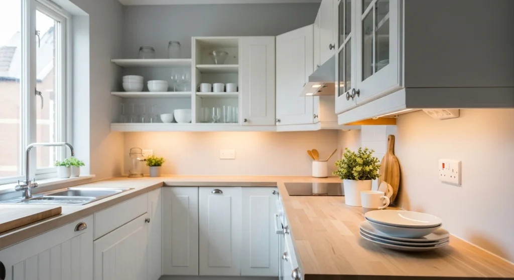 Decorating a small apartment kitchen isn’t about doing more—it’s about doing things intentionally. Light colors, vertical storage, smart lighting, and clutter control work together to create a space that feels bigger than it is.