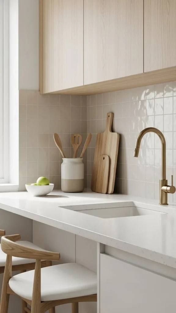The goal isn’t empty countertops. It’s balanced, intentional styling that leaves room to function and breathe.