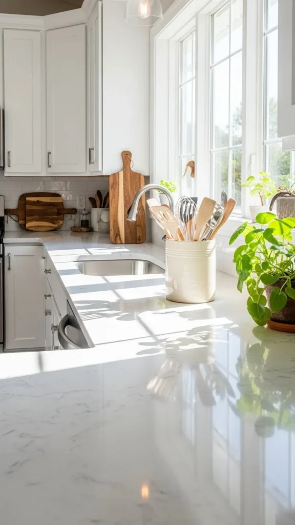 Decorating kitchen countertops without overcrowding is all about intention. Keep less than half the space filled, group items thoughtfully, choose useful decor, and stick to a calm color palette. Leave room to work, move, and breathe.