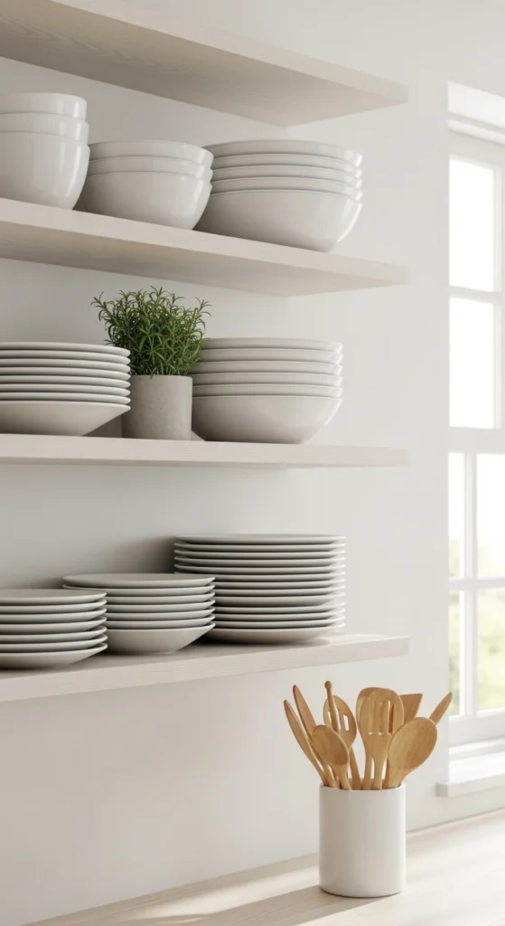 4. Use Open Shelves—But Edit Ruthlessly
