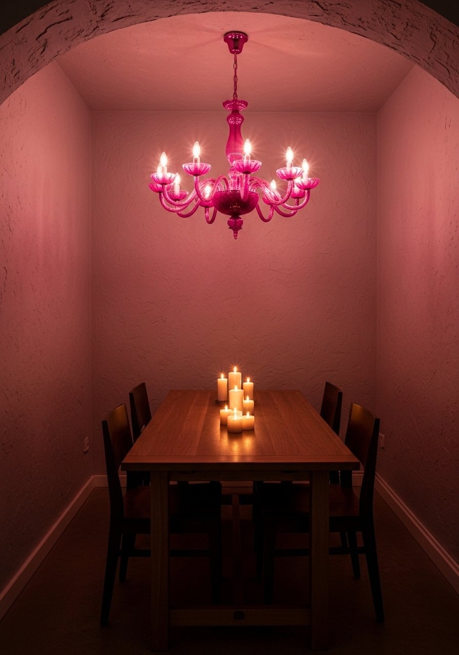 I bought a pink glass chandelier for a low-ceiling dining nook and it turned the table into the room’s center. It adds color and texture without being fussy. My first chandelier was too small for the table and looked lost — lesson learned: size matters.