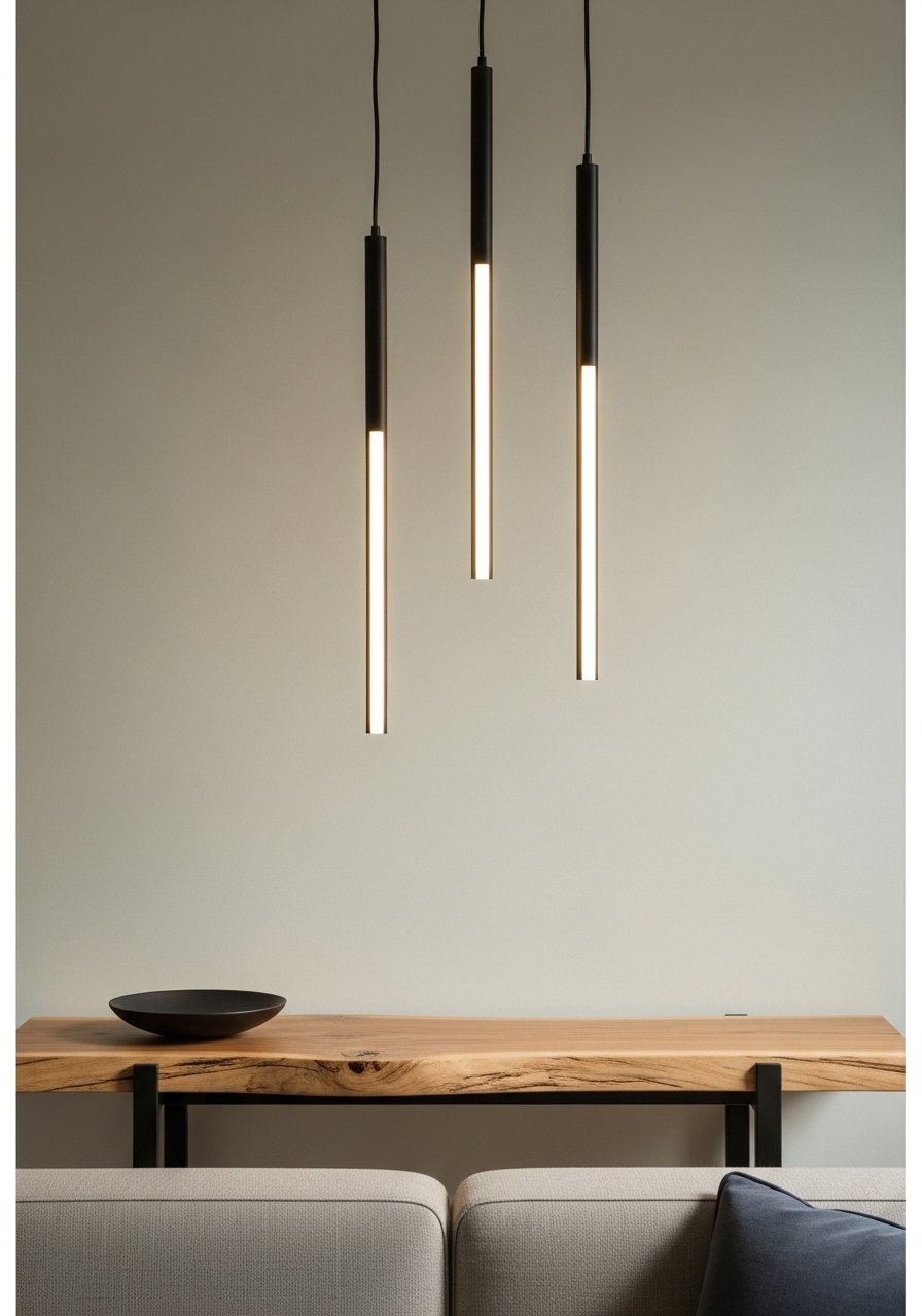 I hung slim geometric pendants above my console to echo the sofa’s clean lines. They feel quiet but rich, and don’t fight the furniture. I once bought pendants that pulled attention away from the art — I swapped them for simpler shapes. The right silhouette should whisper, not shout.