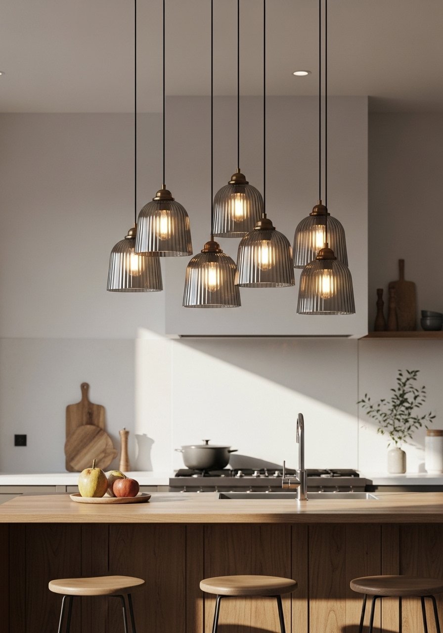 I swapped clear glass for fluted pendants and the difference was subtle but real. The ridges soften the light and hide fingerprint oil I’d noticed on smooth glass. My first choice was too bright and glassy; fluted glass makes light friendlier.