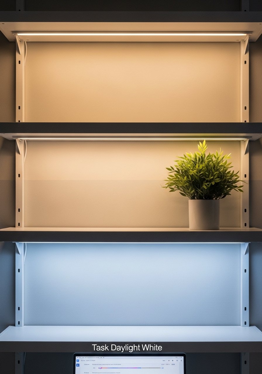 I installed tunable white LED strips under my shelves to mimic natural light through the day. Morning starts cool and focused; evening goes warm and relaxed. I initially set everything to cool and felt drained by afternoon — turning it warmer changed my mood.