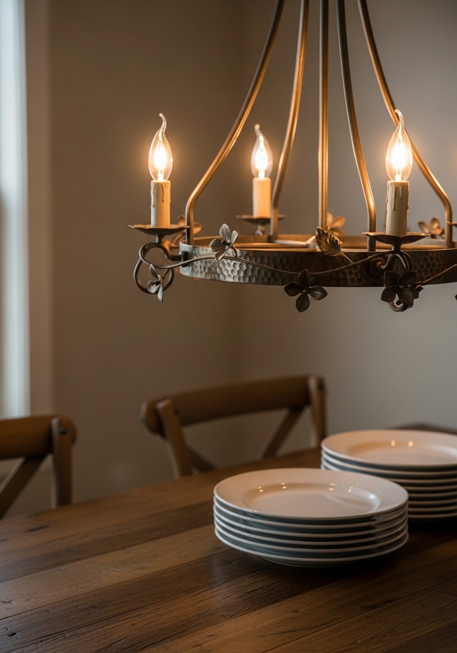 I chose a hammered metal chandelier with leaf-like details for our dining room. It felt nostalgic without being fussy. At first I worried it would read old-fashioned, but the scale and simple finish kept it modern. The organic shape softened the square table.