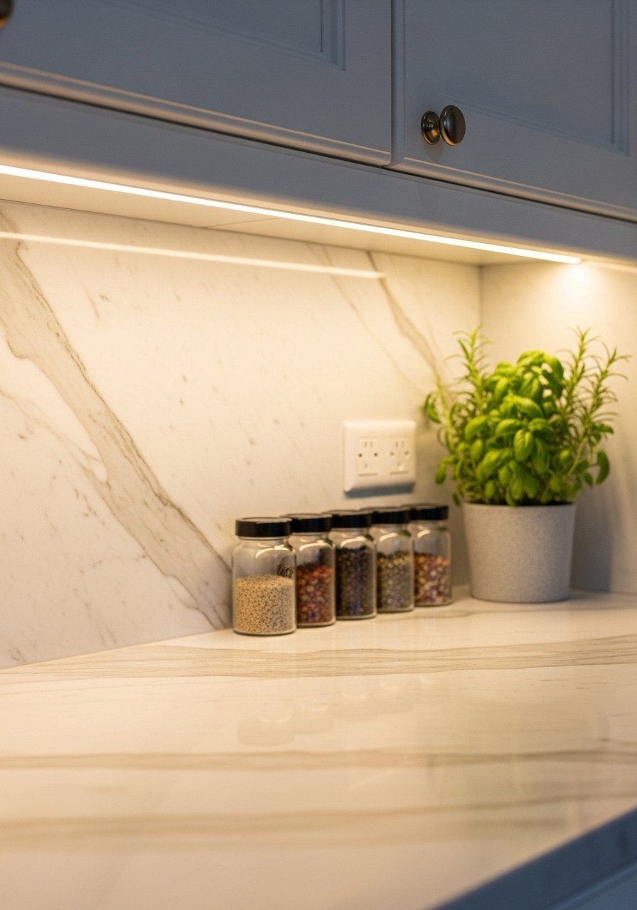 I hid LED strips behind a small lip under my cabinets and the counters lit like a pro kitchen. It stopped the shadows that usually make chopping awkward. I started with exposed strips that were glare-y; hiding them behind molding made all the difference.