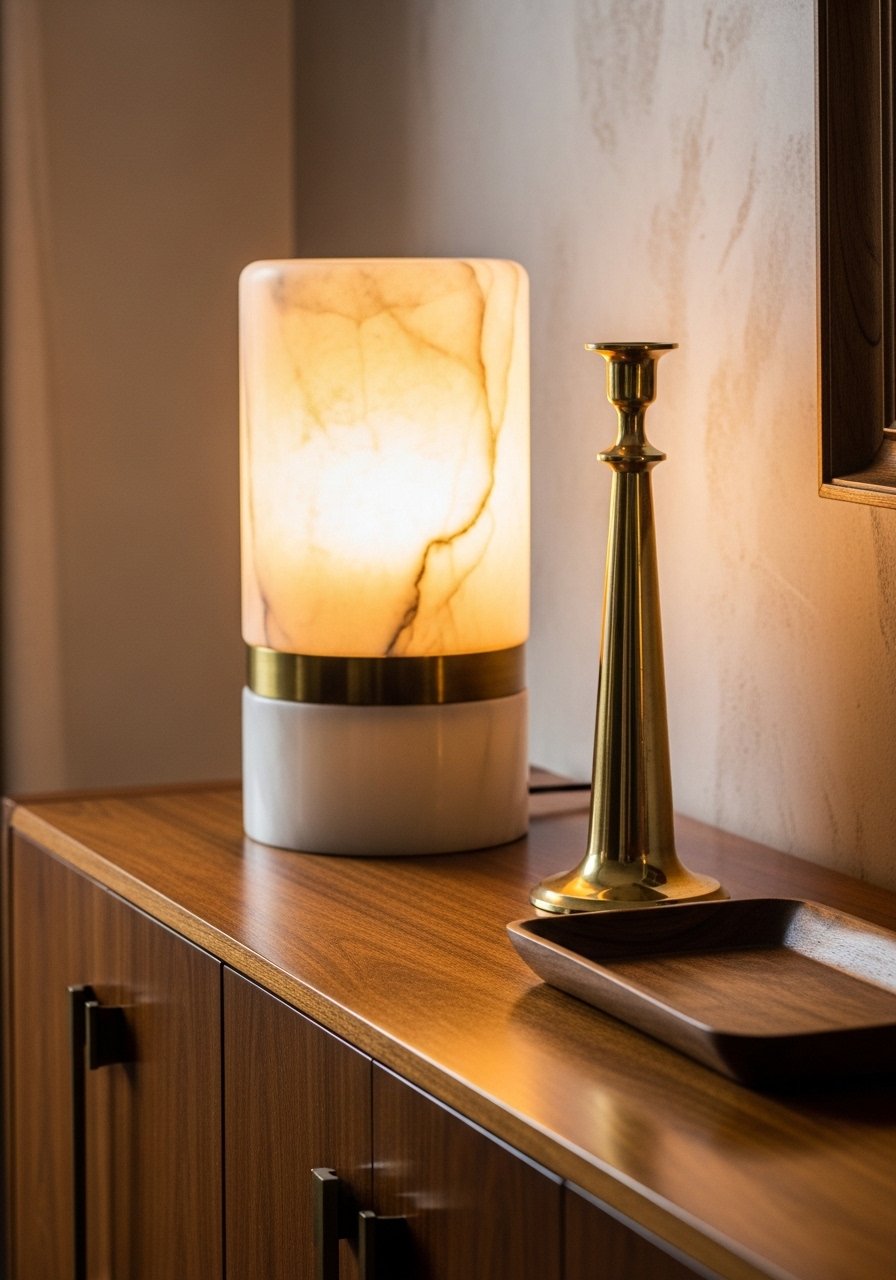 I mix alabaster, brass, and wood in my living room and the space finally stopped looking flat. The alabaster softens, brass adds warmth, wood grounds it. I used to match everything and it read boring. Mixing materials made corners feel edited.