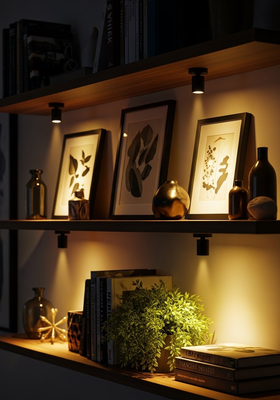I added small directional accent lights to my shelves and art and they made objects read like moments instead of clutter. A tiny spotlight on a frame changes how the whole shelf feels. I once pointed a light wrongly and it created harsh shadows — angle matters.