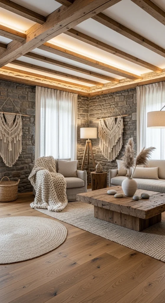Natural materials ground a space. Wood, stone, and woven fibers add warmth and balance.