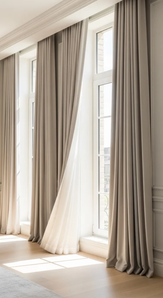 Window treatments shape light. Simple panels in soft fabric feel calm and intentional.