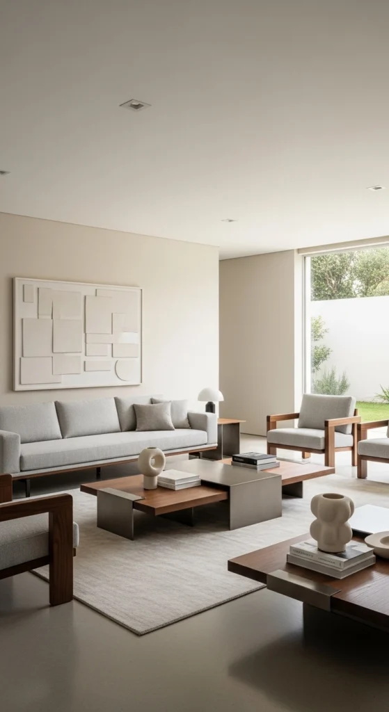 A strong coffee table reduces the need for extra decor. That simplicity helps the room feel calm and confident.