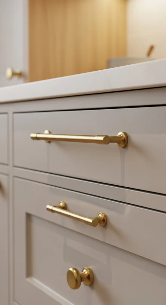 Hardware acts like jewelry. Matching finishes across rooms creates flow.