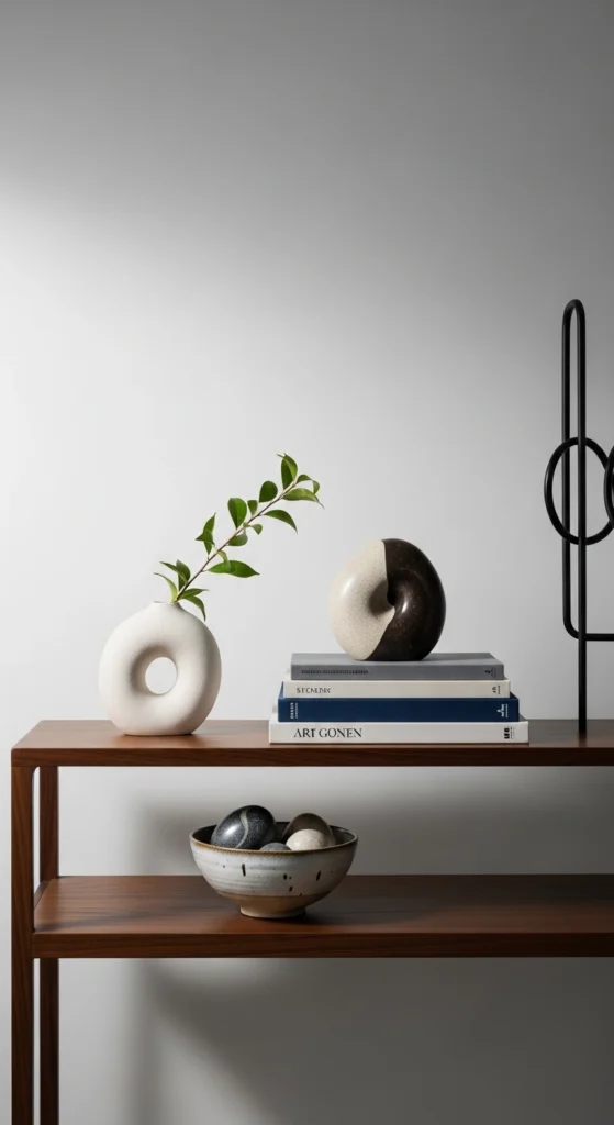 Luxury spaces feel edited. Fewer objects with purpose beat crowded shelves. Choose items that vary in height and material.