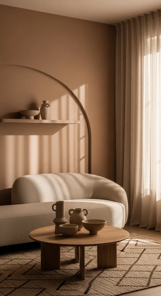 You don’t need all new furniture. Add one curved piece as an anchor. Even a round mirror or arched lamp helps. Balance it with simple straight pieces so the room stays grounded.