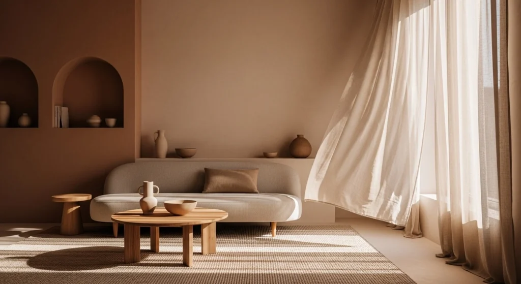 Warm neutrals calm a room without draining personality. Shades like mocha, clay, sand, and soft beige reduce harsh contrast. They allow the eye to rest. Start with paint or removable wallpaper if renting. Even one warm-toned wall can shift the mood.