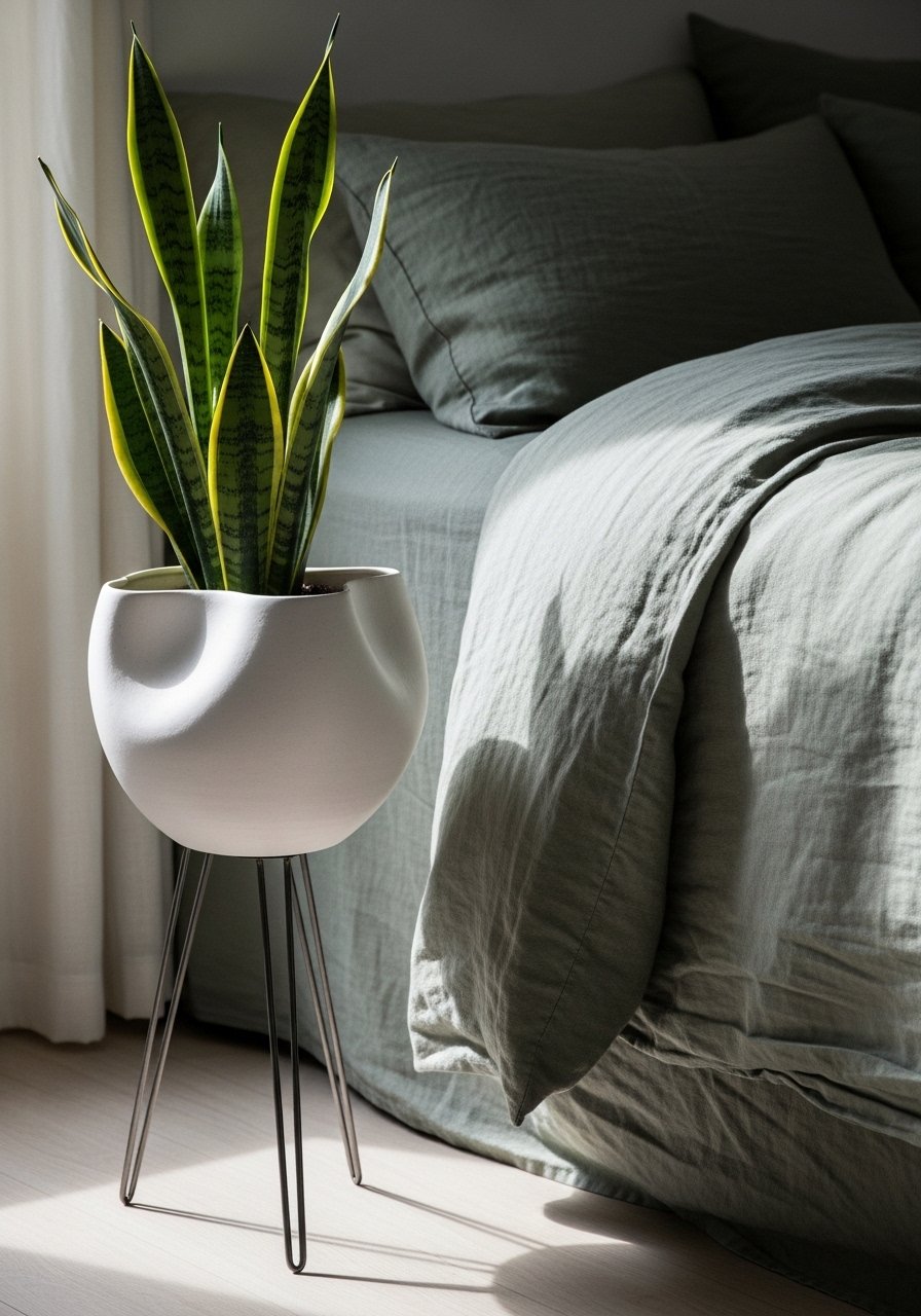 Plants add life and vertical interest without clutter. I placed a tall snake plant in a sculptural planter to bring height without fuss. For low-maintenance style try sculptural ceramic planters. Mistake to avoid: overcrowding — one large plant beats several tiny ones for visual impact and simpler care.