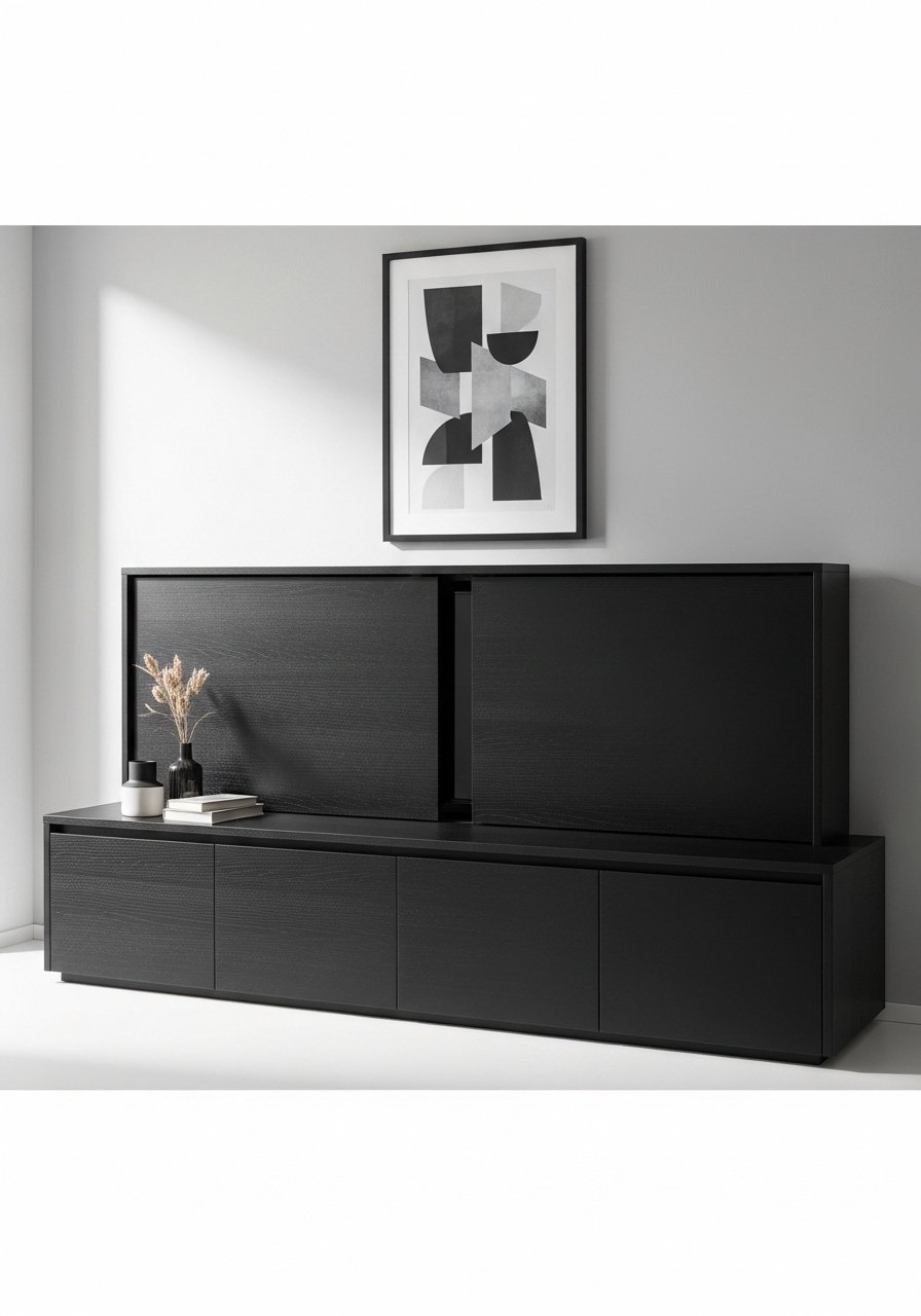 If you want a TV without the clutter, use a low cabinet with sliding doors and display art above. I use a slim media console with storage to keep remotes and cables hidden. Try low profile media console. Mistake to avoid: placing the TV too high — eye level when seated is the most comfortable and discreet viewing height.