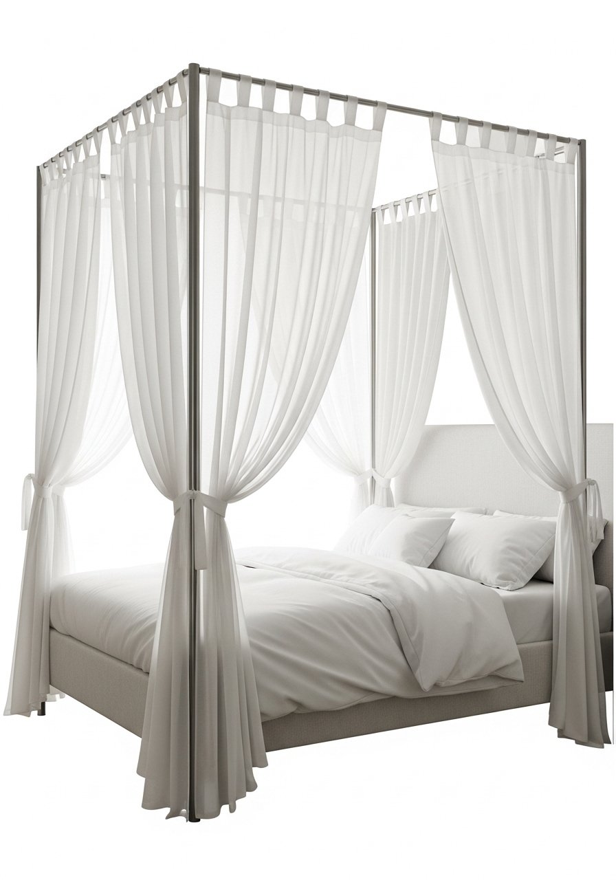 A thin canopy frame adds architectural drama without frill. I installed a matte black canopy and hung sheer curtains that can be tied back for a soft, airy feel. Use minimal canopy bed frame. Mistake to avoid: heavy drapery — keep canopy fabrics light to maintain the modern look.