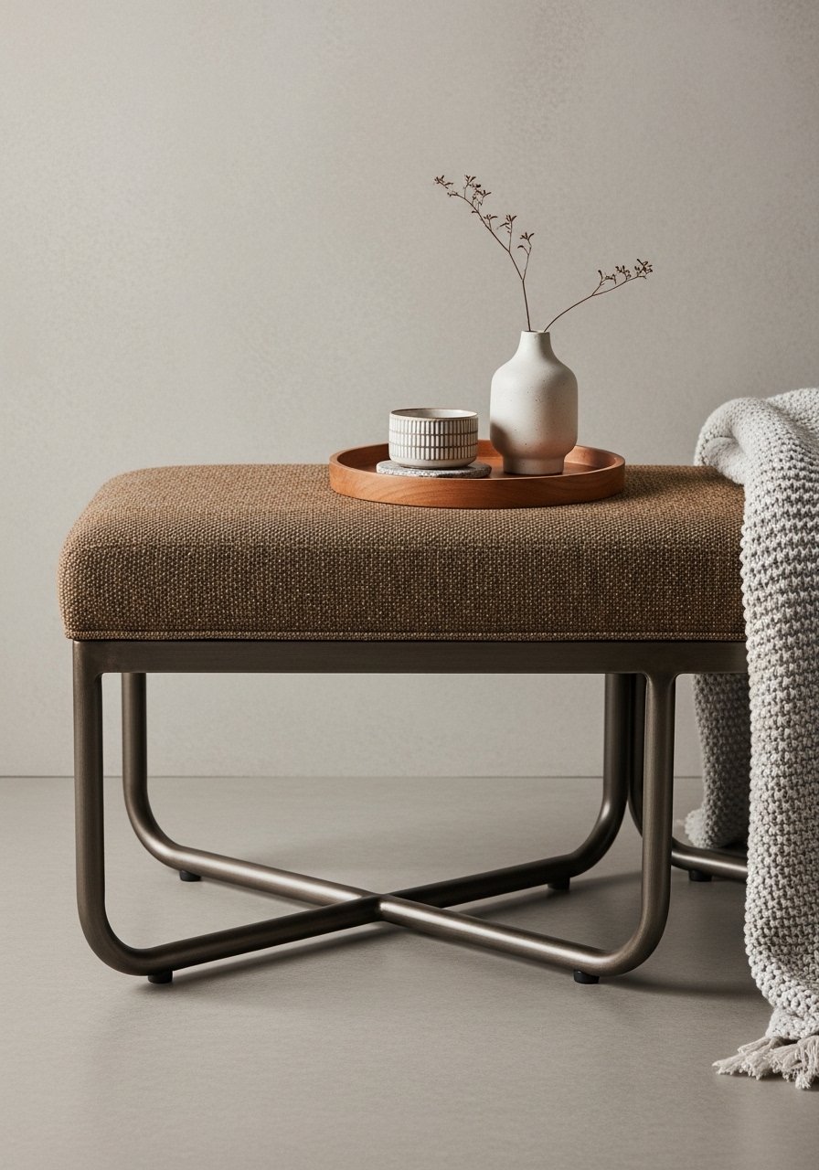 A sculptural bench acts as furniture and art. I chose one with interesting metal legs and a neutral upholstered top for contrast. It’s perfect for morning routines. Try upholstered accent bench. Mistake to avoid: picking a bench too tall — standard height around 18 inches is the most comfortable for sitting.