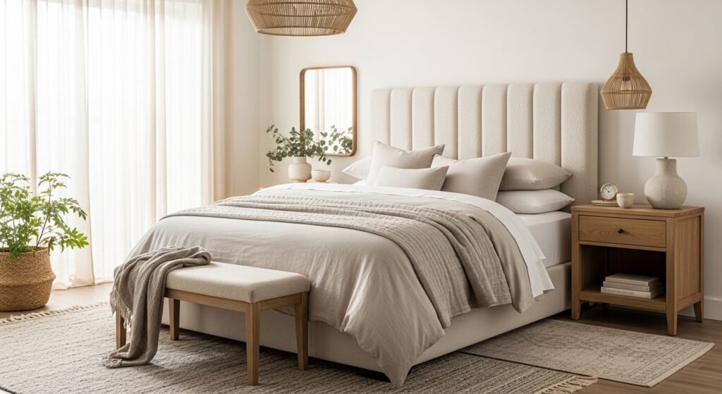 Quick Context: This guide leans toward modern farmhouse, Scandinavian, and soft-boho vibes. Most ideas are under $150 with a few splurges around $200. These looks work best in bedrooms but transfer well to guest rooms and calming studio nooks. Lately I see warm wood tones and organic textures dominating showrooms, which is why I used lots of linen, jute, and muted creams here.