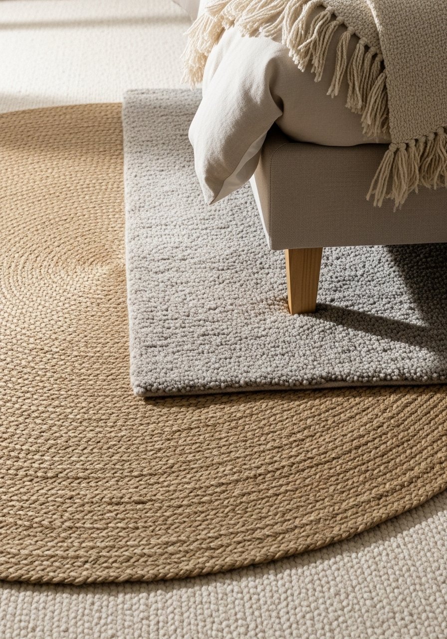 Layering a soft wool rug over a flat jute base adds cushioning and visual depth. I used an 8×10 jute anchor and a 5×8 plush rug at the bed. Jute 8×10 rugs plus a soft 5×8 wool rug creates the perfect ratio: large ground, smaller cozy layer. Avoid tiny rugs that disappear under furniture. This combo keeps cold floors from waking me and gives the room a composed, layered look.