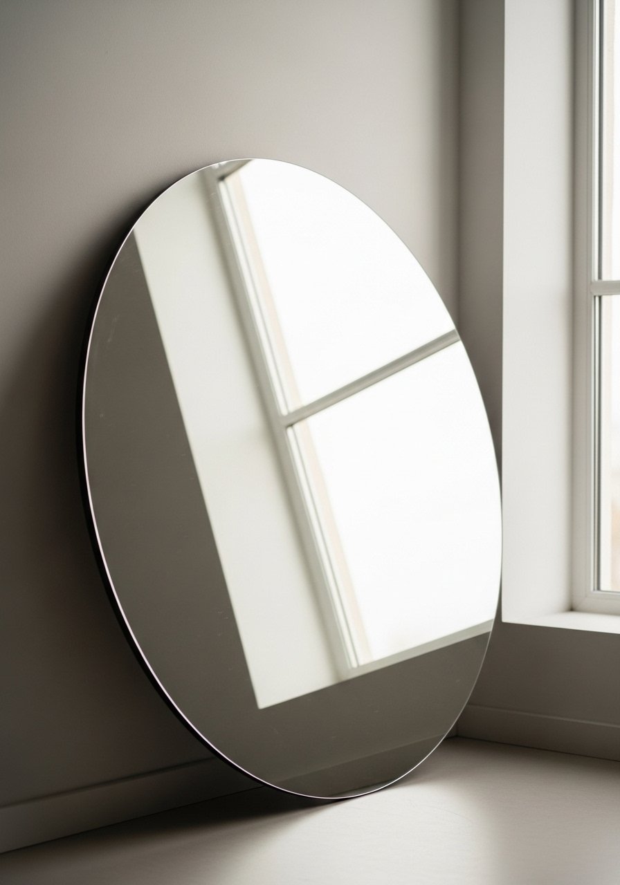 An oversized 36-inch round mirror reflects light and opens up a small bedroom. I leaned mine opposite a window to double the daylight. Try large round mirrors. Avoid mirrors with heavy, ornate frames in a soft neutral room; they can clash. The mirror made my narrow bedroom feel wider and brighter, which changed the energy and helped me feel less closed-in at night.