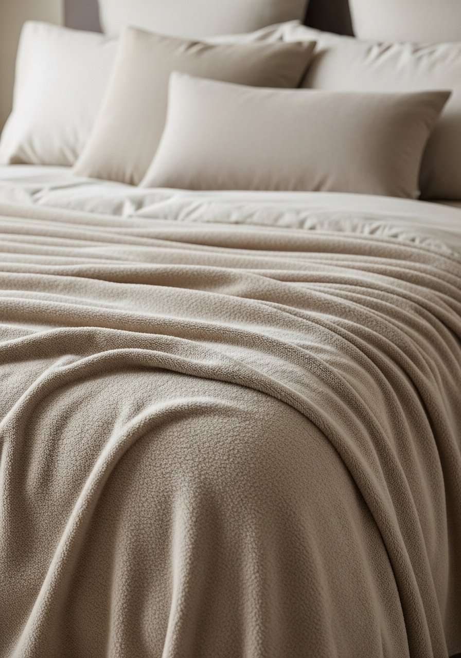 A neutral weighted throw provides gentle pressure that helps me relax before sleep. I keep one folded at the foot of the bed in oatmeal or stone. Beige weighted blankets work well for tactile comfort without adding visual weight. Avoid synthetic sheen; choose matte cotton or linen blends for breathability. Having this accessible made my evenings feel more intentional and eased restlessness for both me and guests.