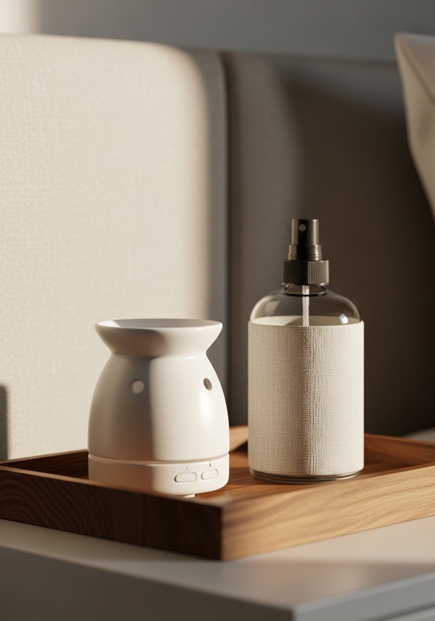 I keep a small diffuser with lavender or cedarwood-like blends on my dresser to cue relaxation. A linen spray in a neutral bottle freshens sheets between washes. I use ultrasonic essential oil diffusers and a linen spray in a muted glass bottle. Avoid overpowering scents; subtlety is key. The ritual of misting and diffusing helps me switch into a calmer state before bed.