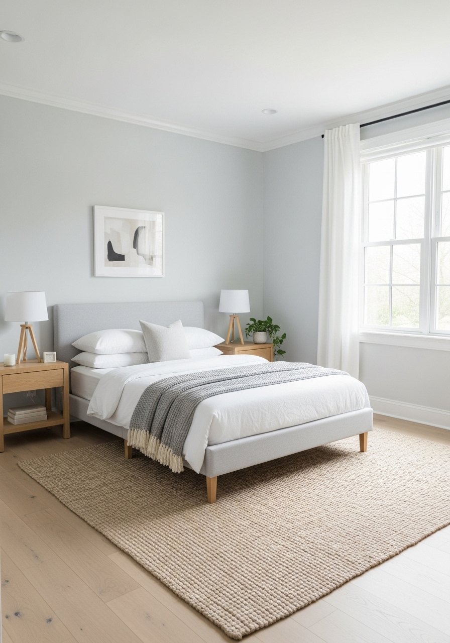 Swapping beige for a pale cool gray with bright white trim made my room feel fresher and more restful. I kept furnishings warm wood to balance the cool tone. For a no-paint option, try peel-and-stick panels in pale gray. Avoid greys that lean too blue or too purple. This combo reads modern and clean and helps me feel calm without the room seeming cold.