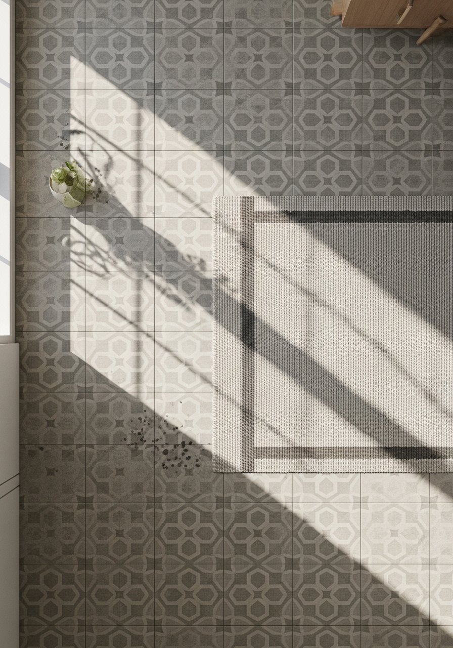 There is something about patterned tile that anchors a neutral kitchen. My feed is full of kitchens with subtle geometric floors. On the ground use 60-30-10 for tiles versus other surfaces. In photos the pattern pops. In daily life it hides crumbs and traffic marks better than plain stone. For small kitchens pick a repeat that reads small at arm's length. Avoid high-gloss finishes. They show wear faster. Neutral patterned floor tile samples helped me narrow options.