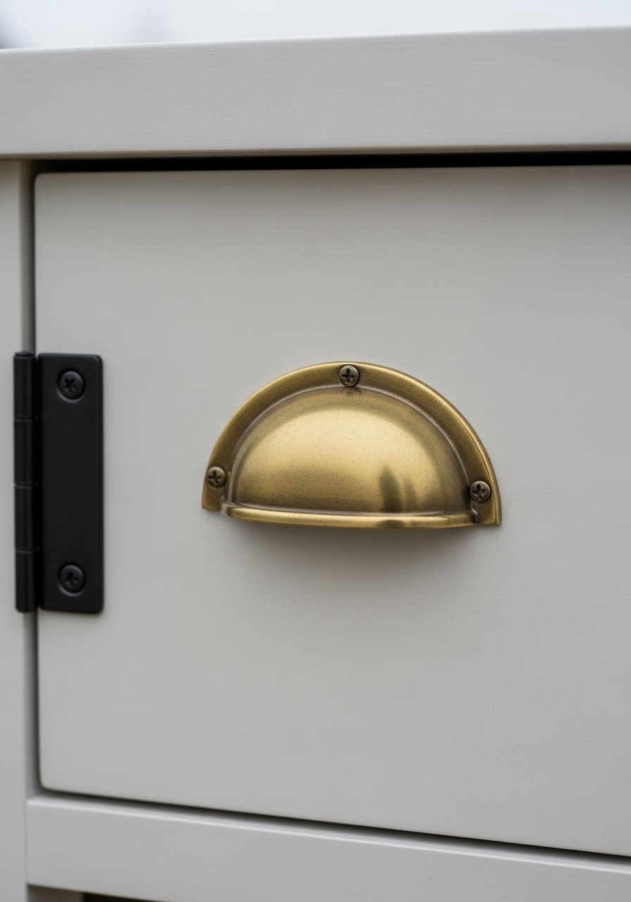 Most people buy shiny hardware and regret it. Matte white paint looks current in photos and holds up in person. I swapped standard knobs for brushed brass pulls and it read like a custom upgrade. Budget range was $30 to $120 total. A common mistake is mixing finishes that clash. If your faucet is warm brass keep at least one other metal warm. Try brass cabinet pulls paired with a stainless sink for balance. In small kitchens choose pulls that are 3 to 4 inches long for the right scale.