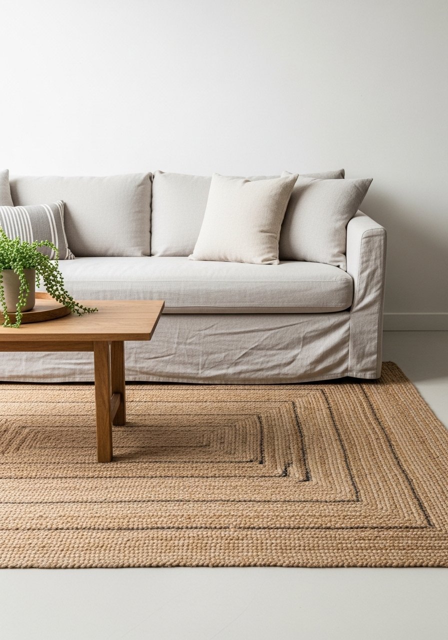 Textured Linen Sofa With Jute Rug