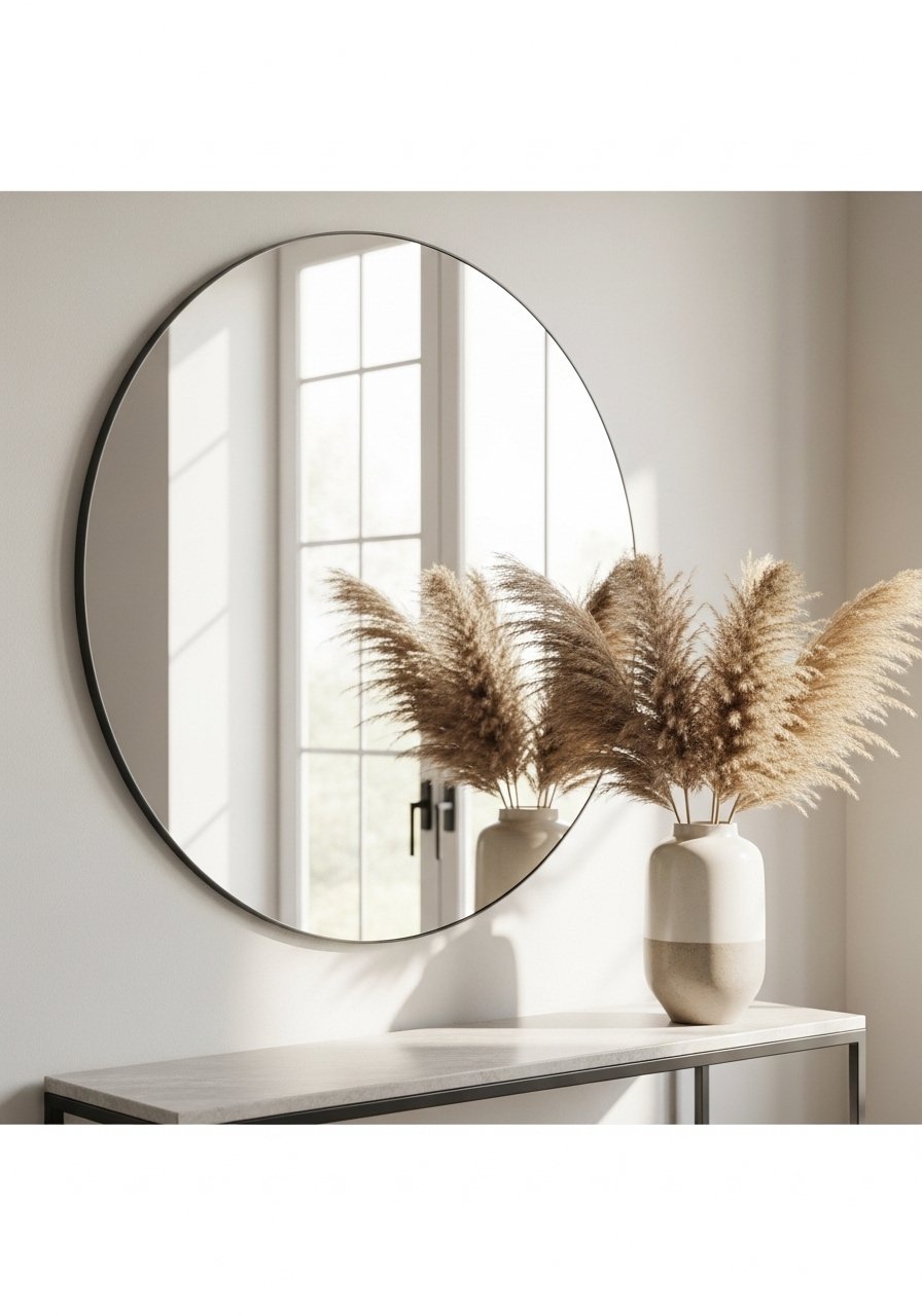 An oversized 36-inch round mirror opened my small living room instantly. I hung this 36-inch round mirror above the sofa and pulled furniture slightly off walls. Mistake to avoid: hanging the mirror too low or too small—it should reflect light and include architecture for scale. Mirrors are an easy way to add perceived space and soft glow without changing paint.