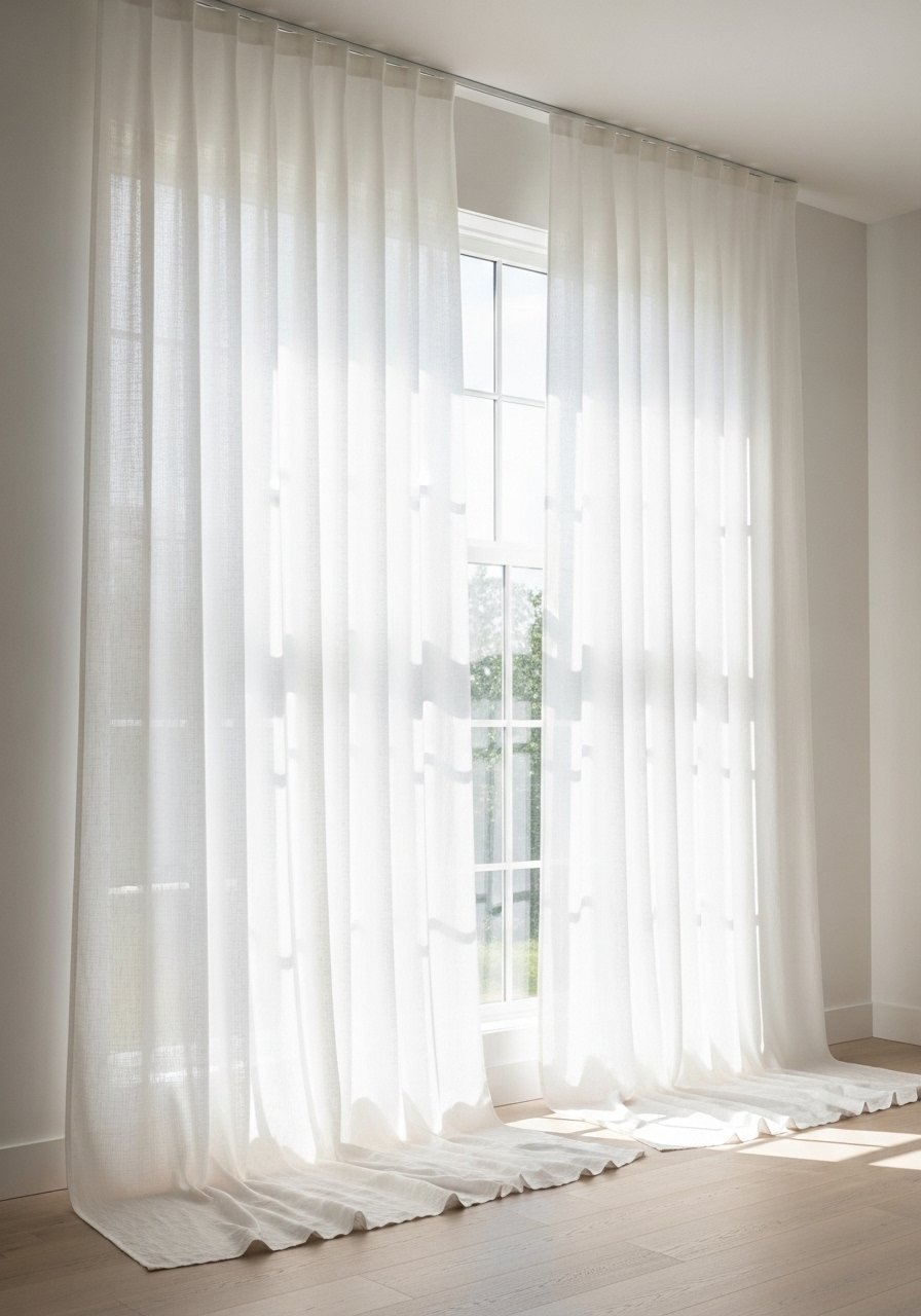 Hanging curtains high and letting them graze the floor adds instant height. I installed 96-inch panels for my 9-foot ceilings using linen curtains, 96-inch. Mistake: cutting panels short. Hang closer to the ceiling, not the window frame, to create an elongated silhouette. The room felt taller and calmer the moment the fabric went up.